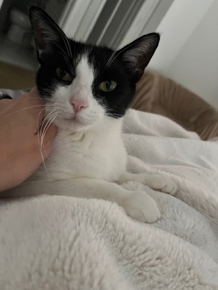 Bonbon is a gorgeous tuxedo girl with the softest fur and the sweetest personality to match! At just 2 years old, she's the perfect mix of playful energy and snuggly affection.