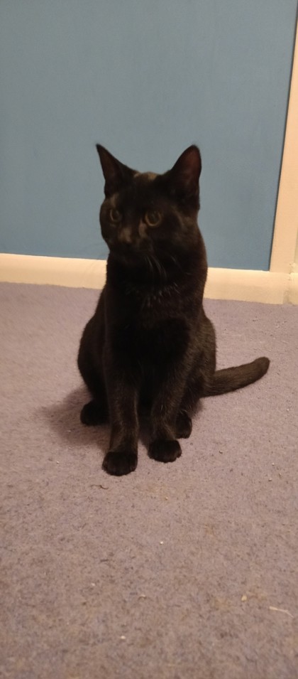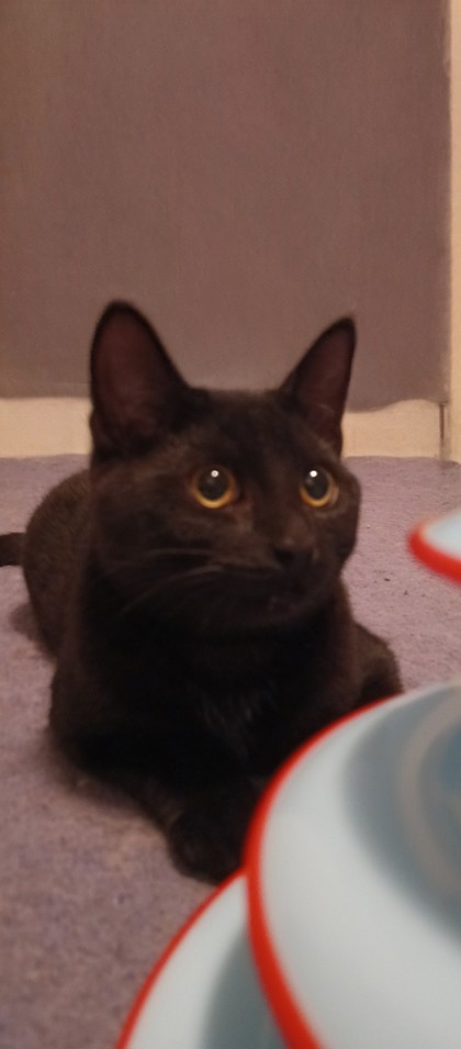 I am litter trained and I love to play with cat toys. I especially like blankets and if you are keeping them warm, I might just come and sit on you to cuddle. Once I trust you, I will lick your hand gently. I am still little so I like toys I can chew on.