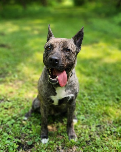 My name is Callista, which means "most beautiful" and I'm told I live up to that name with my golden eyes and brindle coat. I absolutely love being around people and will greet you with big wiggles! I can be a bit picky about my canine friends, but I have lived respectfully with cats and children in the past. I can have a high amount of energy but giving me good outlets for mind exercises such as puzzle feeders, kongs filled with yummy peanut butter and bully sticks keep me entertained for a good while! I also LOVE my belly scratched and snuggling at the end of a long day basking in the sun! My future family will need to be dedicated to helping me through some anxiety, but they will be rewarded with the sweetest kisses in return.