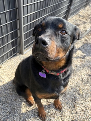 Do you love Rottweilers? Do you love a good walking partner? Do you love giving ear scratches or belly rubs? Then you might be a fit for me, Sadie Lou Who. I'm around 55 lbs, and a medium to high energy girl that loves play time and long walks! I do get excited when I play, so I prefer children over the age of 10 and no cats in my home. I can be dog selective, but that's only because I want the perfect playmate, so I just need a proper introduction, then we are off to play! I've got the best butt wiggles when I'm excited and I am very treat motivated!