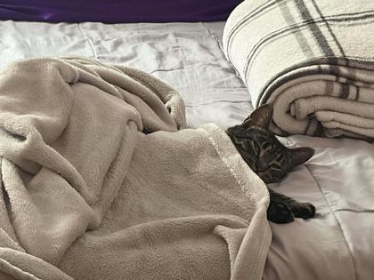 Some cats tiptoe into your life... and then there's Moreen, who arrives like a velvet-pawed queen ready to claim her throne. With her stunning markings (we suspect a touch of Bengal flair) and eyes that track every movement with kindness and intelligence, she is impossible to overlook.