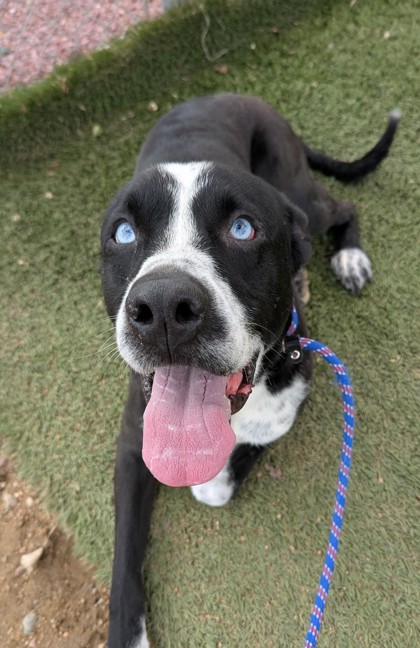 This sweet, lively pup is full of heart and eager to connect with the people he trusts. He may greet new situations with a bit of hesitation, but with a gentle approach he quickly shows his affectionate side, leaning in for pets, nudging for attention, and happily soaking up all the love offered. Once he's comfortable, his playful energy shines, and he enjoys exploring, checking in with his handler, and sharing joyful moments.