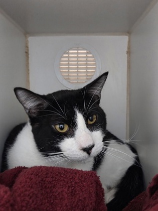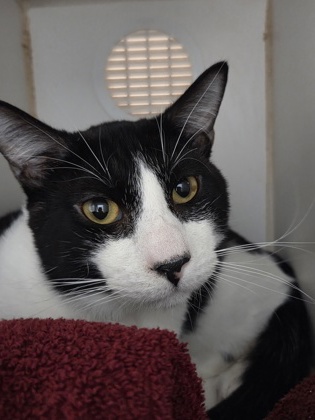 This 7-year-old tuxedo cat always looks like he's dressed for a special occasion! With his sleek black and white coat, he's the picture of feline sophistication - a true little gentleman in his "tuxedo".