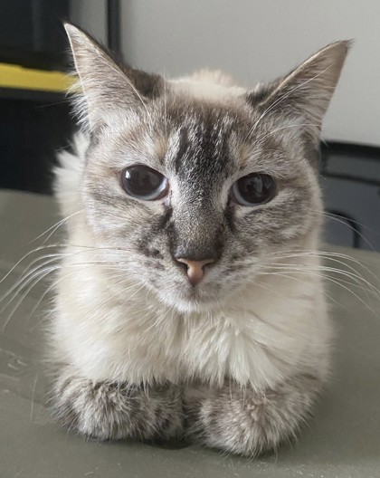 Hi, I am Vanna. One of the SWEETEST ladies around. My short life has not been the easiest so far. I have had multiple litters of kittens and have lived in a house with far too many other animals. I'm so excited to start my new chapter, where I can experience gentle love at my own pace. I trust my foster mama and when she pets me, I just purr away. I like to find a cozy, quiet spot to nap and birdwatch and can often be found curled up on the bookshelf or on the cat tree. Loud sounds and quick movement scare me and I hide until