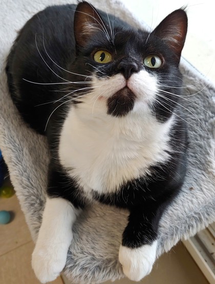 Babs is very sweet, petite, laidback, social and also can be playful & "kitten-like". She is a curious girl and full of purrrsonality and sometimes has a little catitude...but we love that about her. Let's just say there is never a dull moment with Babs. She is very entertaining and has the cutest facial markings. Babs too loves her kitty friends and can often be found playing with them.
