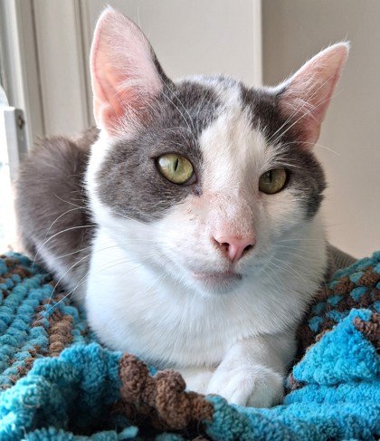 Here at the shelter, I spend most of my days curled tightly in my blankets, tucking my fragile heart away beneath their folds. I'm shy, and new faces make me nervous. But please don't mistake my stillness for indifference. Beneath it, I ache for love. I watch people walk by, hoping someone will notice the quiet little cat hidden in fabric and see the longing behind my timid green eyes.