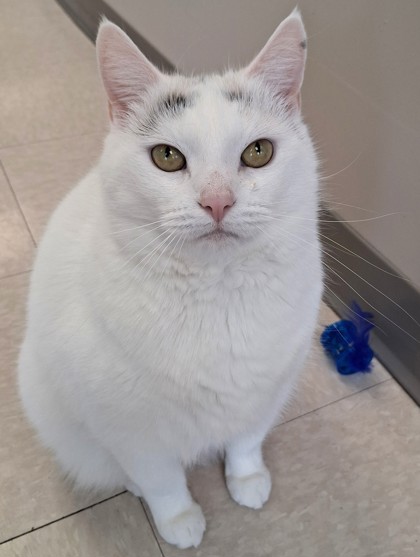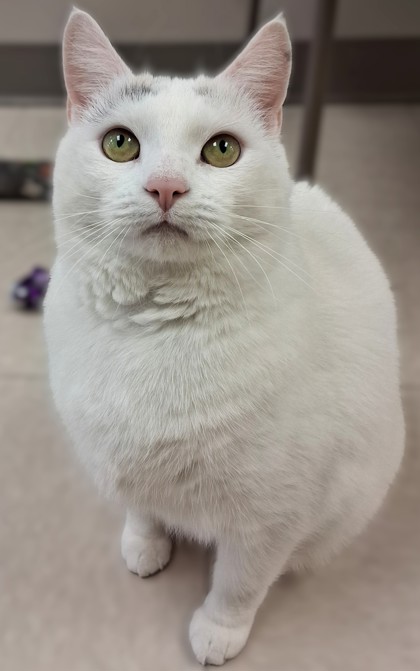 Queenie is the Queen of the cat hallway! She has the very important job of greeting visitors as they enter the cat side of the shelter. She loves to run right up to people and welcome them and kindly ask for their attention.