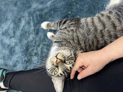My name is Grayman. I am a quiet, tender soul that is still learning that the world can be kind. I am very shy and tend try to find a spot to hide until I feel safe. But with gentle words, soft touches and time... I will begin to show my beautiful, trusting heart! I don't ask for much - just patience, understanding and a safe place to call home. If you're someone who believes in the power of love and second chances, I will be here waiting for you to help me bloom. I am bonded with my sister Betty/ Tigger so we must go home together.