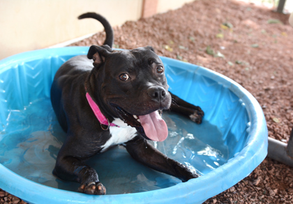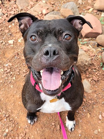 Hey there, it's Valentine's month and I am available to be your furever sweetheart so we can both find our true love! I'm almost 4 years old and a Staffordshire Terrier mix who is friendly, playful, affectionate, smart and eager to please my human companions. I love soft stuffy toys that squeak, splash pools, fetch, leash walks, hugs, and body rubs. I am ready to bring you daily belly laughs.