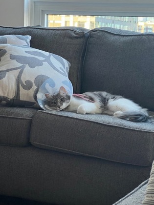 Penelope and Sakura are the most adorable Mom and daughter pair. Sakura is a sweet, adorable, brave kitten who loves to play and then crash on the couch cuddled up to her human or mama. She loves to run around, climb, and explore new spaces and toys (especially a ribbon or spring!). She's very friendly and outgoing. Penelope is just about 2 years also so still somewhat a kitten herself. She loves exploring new spaces, being up high, and sniffing new smells! She is also very social and enjoys attention from her humans. She's very gentle and vocal - she will trill while roaming the house and meow to get your attention. She likes to play with her ribbon toy, cuddle, and look out the window. Sakura and her mama Penelope are very close and are looking for a home together.