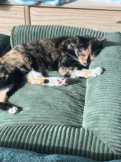 Chloe is a sweet, gentle senior lady who loves being close to her humans. She enjoys sitting nearby while you work or curling up on her cat tree for a cozy nap. Though shy at the shelter, she quickly warmed up in the home environment. Chloe is affectionate, quiet, chill, and gentle. Chloe is a great companion and she is ready to meet you!