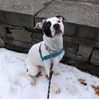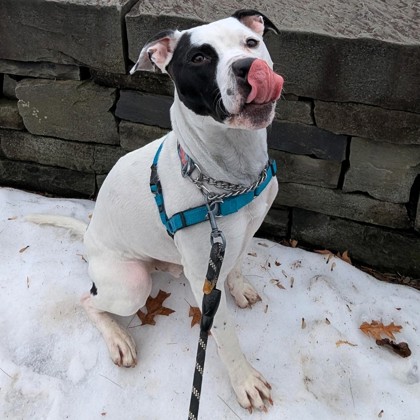 This handsome guy is Kirby (51 lbs). He's been a guest with us for nearly five months now, so we've gotten to know this bouncy good boy a lot better now! He's especially enamored with his big comfy blankets, especially on super chilly days! He's joyfully exuberant, and loves to play with toys, and if you happen to have a little bit of cheese, you've got a new bestie in him. When it comes to other dogs, he's honestly a bit awkward, but he may be able to settle down with another mellow dog. We can't predict how he'd get along with any other animals in the home, but we'd love to have a conversation with you about it, after you've had the chance to meet him for yourself.