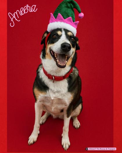 Ameera is a 10-year-old Border Collie that currently weighs about 52 pounds fully grown! Ameera can be shy during her meets, so she will need multiple greetings to feel comfortable enough to trust. But once she has the opportunity to get to know you, and become a part of your family, she would love to cuddle with her favorite humans.