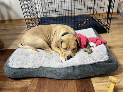 Meet Sunni! All her puppies have been adopted and she is looking for a home of her own! She is approx. 45-50 lbs. She has done great meeting all people and kids. Sunni is very sweet and prefers to be where there are humans! Sunni follows you around like a shadow. She waits patiently for a morsel to accidentally drop on the floor! Sunni is completely potty trained. She is kennel trained, but prefers to chill on the couch or lay on the bed. She loves to chew on bones and explore outside. Sunni does well with most dogs, but would need proper introductions with any dogs currently living in the home. She has not been cat tested. If you are interested in making her part of your family, please fill out an adoption application on our website: https://www.aheinz57.com