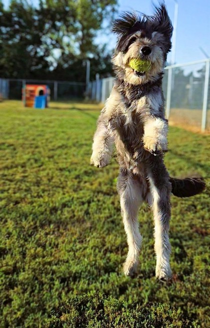 In his former home, Winston Churchill did become protective over his food, toys, space, and his people from other animals. Because of this he would need to be in a home without other animals (both cats and dogs) and without children. Because of this, he will require a fenced in yard for his safety. While he does not do well living in a home with other dogs, he still loves to play with others outside of his space and away from his toys and food. He also attended doggy daycare in his former home, which was perfect for working off his energy and to continue his socialization. Because he enjoyed it so much, we recommend continuing something such as doggy daycare to continue his socialization once in his future home.