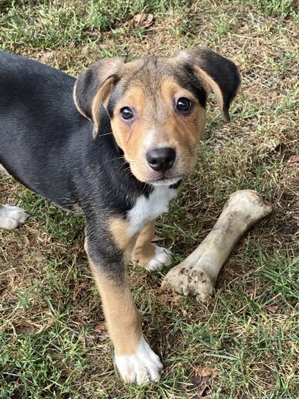 Apache is a 3-4 month old hound mix who is full of energy. He enjoys playing with his sibling, barking at the house cats and playing with his toys. He has done well meeting other dogs and loves kids. He can be shy when you first meet him but he does warm up quickly. He is doing well with potty training, leash training and is learning basic commands.
