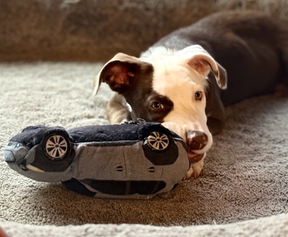 Rosie is making great progress with house training and leash walking, following the lead of the three other dogs and learning quickly. She already knows recall without any training-- she's as smart as a whip! (Must be the Border Collie!) Rosie is sure to grow into a wonderful, loyal companion - maybe she's meant to be yours! ??