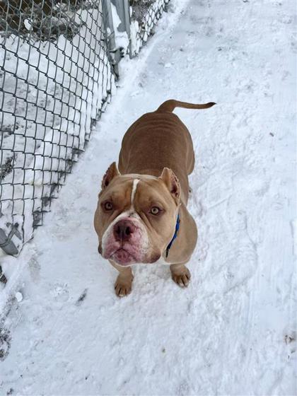 Boris is an adorable, short and chunky guy estimated to be around 3 years old. While we don't know much about his past - he came to us as a stray and was never claimed - what we do know is that he absolutely loves people! Boris is all about attention and affection; he'll happily roll over for belly rubs and even poke his nose through his patio just to say hello.
