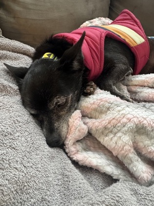Collette is 8.5 years old. She is currently heartworm positive but is currently going through treatment for it. She is house broken and crate trained. She knows sit. She loves cuddling and enjoys pets, she actually demands it by showing her belly. She is the perfect dog to cuddle with in a blanket on the couch with a warm drink and binge watch your favorite TV show. She gets along her foster sister.