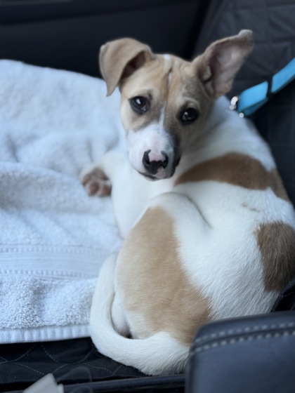 Hi everyone! I am looking for my forever home and would love to meet you to see if you will be a good fit for me. I love everyone that I meet - other dogs, cats, kids, and grown ups. My foster mom is teaching me to go potty outside and she tells me I'm doing really well with that. I love to play with toys by myself or with a buddy. We have been working on walking on a leash and my foster mom takes me on car rides with her all the time. She says I'm a great car buddy. I like to cuddle on the couch once I wear myself out and then I sleep all night in my kennel! Do you think that you could be my forever family?