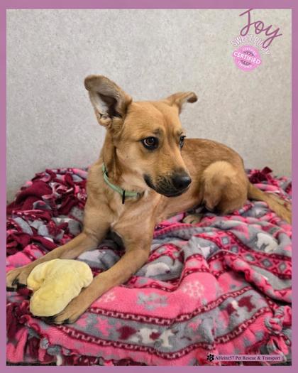 Joy has just arrived, so we're still getting to know her, but she already shows signs of being a loving, eager young dog who will thrive with structure, consistency, and an active home. With some guidance, she'll be an amazing companion for someone who enjoys training and watching a dog grow into her best self.