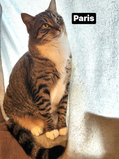This super loving, friendly, attention wanting cat is a complete ball of fun. Still kittenish and playful. Loves to drink from a very slow running faucet where she lets the water run over her head and drinks it from there. She does have a sister, London, if you are wanting two but it's not required.