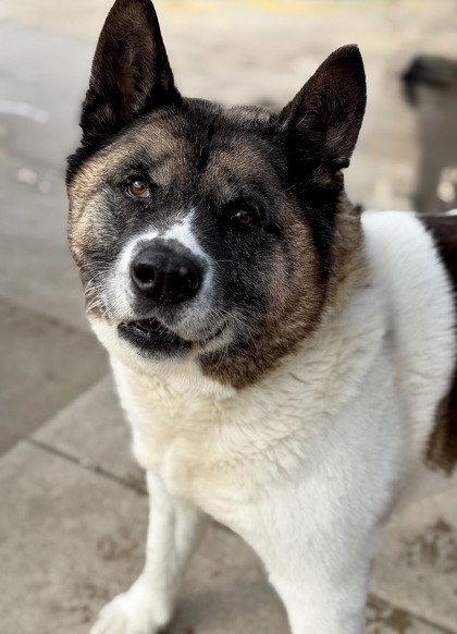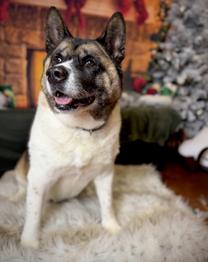 Hi! My name is Molly! I'm an Akita mix but think like a teddy bear. I came to the shelter as a stray with my friend Hershey. I came in first and didn't do well by myself. I was sad and confused not knowing why Hershey didn't come with. It didn't take long though. Hershey likes to run and got away from our owner again. I was excited to see him and was back to my bouncing self. We need to go home to our new home together!