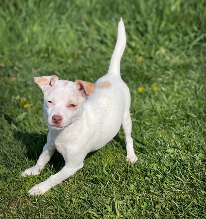 Mary is a high energy playful pup that likes everyone, thinks all dogs - big or small - are her friends, likes to go for walks, walks, walks!