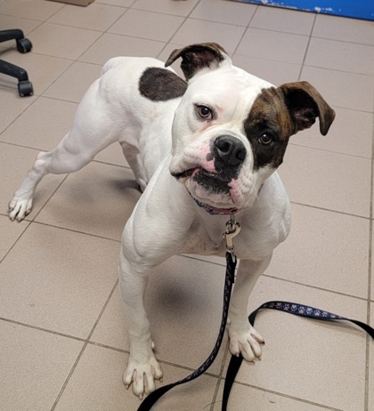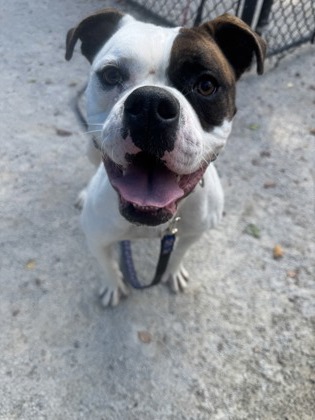 Oggie is a bouncy, playful boxer with energy to spare and love to give. She's always ready to wiggle, bounce, and brighten your day-especially if chicken treats are involved. Oggie's other specialty? Sweet kisses, given freely and often.