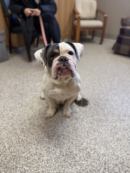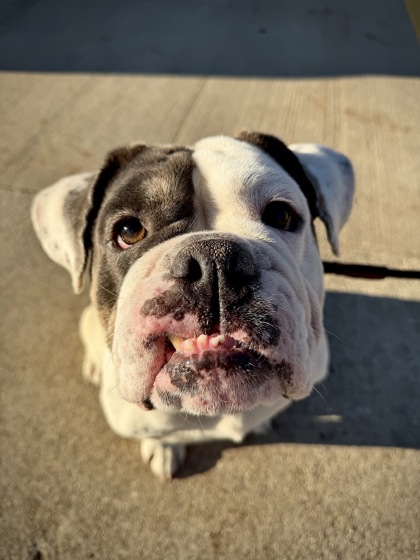 This squishy, snorty, absolutely adorable Old English Bulldog came to us as a stray (we know... we're confused too ??). But now she's ready to find a home that moves at her perfect pace.