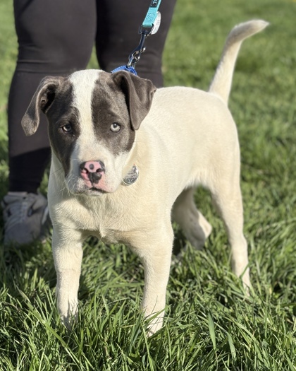 This beautiful blue and white boy with the crystal eyes turns heads wherever he goes! Merrick is a gentleman with loads of potential to be a loyal companion. He bonds to his people quickly and deeply, pledging his love soon after he meets them. He is friendly with other dogs, loves snuggles, and enjoys a good exploration expedition at the park on nice days. Overall, he seems like a lazy guy with spurts of zoomies to keep his people entertained. Merrick is a smart boy who is crate trained and learning his manners. He'll make you fall head over heels with his handsomeness and sweet disposition! Please help us find Merrick the forever home he so desperately deserves!