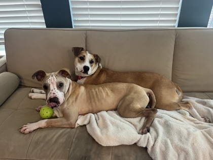 I have spent most of my life at the Humane Society, but I have had sleepovers with a couple of other families and their fur babies. I adapt quickly to new places, and I get along great with other dogs. I am always up for a tug-of-war or wrestling session, and I listen well when I am told to take the action outdoors. Oh! And I really like to play with kids too- especially with a tug toy and a ball to fetch. I can't wait to find my forever family to grow up with. So, what do you say?