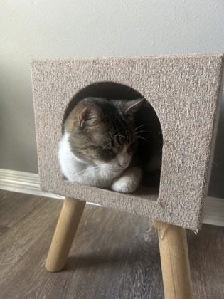 Note from foster: Lucky is a sweet, gentle older gentleman with a heart full of love. He may be vision-impaired, but that doesn't stop him from enjoying life-especially when it comes to his favorite thing: head pets! Lucky thrives in a calm, quiet home where he can feel safe and relaxed. Lucky likes to be snuggled up in a cozy hidey hole. If you're looking for a laid-back companion who will happily soak up affection and keep you company, Lucky could be your perfect match.