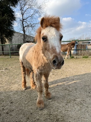 Caramel is a charming miniature gelding whose warm personality perfectly matches his name. Calm, friendly, and easy to love, he enjoys gentle attention and truly shines when spending time with his people. Brushing sessions are one of his favorite activities, and he is always content just hanging out nearby, soaking up companionship.
