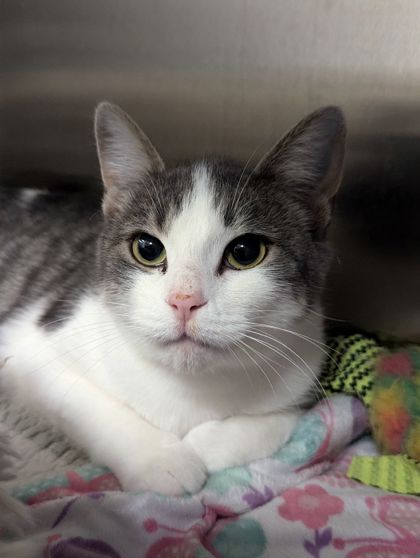 Dina is a sweet and sensitive young lady who arrived in our care as a stray. Since then, she's been gently building her confidence and learning to trust the world around her. Dina is starting to blossom beautifully - she's beginning to seek out affection on her own and is showing her playful, loving personality more and more each day.