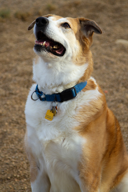 Hi, my name is Rosie, and I'm an 86-pound mixed breed with a heart full of love and a big, beautiful smile. Even though I'm an older gal, I still enjoy getting out to explore and stretch my legs-I've got some good energy left in me! That said, I do tend to burn it off quickly, which means I'm just as happy to flop down and relax after a little adventure. I absolutely love belly rubs, pets, and really any kind of attention, and when I'm feeling happy, I'll reward you with kisses and my signature smile that's sure to brighten your day. While I adore being with people, I do have an independent streak and some boundaries, so I'll do best in a home that respects when I need a little time to myself. I'm a foodie at heart, which makes treats extra motivating, and I already know lots of commands to show off my good manners. Being outside and just tagging along with you is one of my favorite things, and I'd love to find a family who enjoys both quiet moments and little adventures. With me by your side, you'll have a loyal, affectionate companion who's just as happy exploring as she is lounging by your feet.