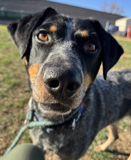 Hi there, I'm Sarge - a 55-pound Blue Heeler mix with a big heart and an independent streak. I'm a sweet guy once you get to know me, but I like to take things at my own pace. When I first meet new people, I tend to hang back and observe; I'm more of a "let me explore first" kind of dog. It's not that I don't care - I just need a little time to feel comfortable. The best way to get to know me is to take me for a nice walk and let me sniff around while we spend time together. I'd really like to meet everyone who lives in the home before I commit to joining your family. Once I feel safe and trust you, I'll show my softer side - standing close for pets, checking in to see what you're doing, and even sneaking in a kiss or two. Because I have clear boundaries and value my personal space, I'd do best in a calmer home without small kids or a lot of noise and activity. I'm looking for someone patient who understands that building trust with me takes time, but once that bond forms, it's truly special. I'm affectionate, loyal, and love being part of my person's day once I know I'm safe. I'm also an active boy who thrives on adventures, exercise, and activities that keep my sharp mind busy. If you can offer me understanding, time, and plenty of walks, I promise I'll show you just how sweet and devoted I can be.