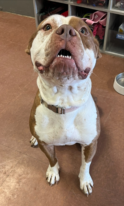 Hi there! I'm Xena, a 58-pound Terrier mix bursting with spunk, silliness, and nonstop tail wags that might just whip your legs as I walk by. I'm a total social butterfly and truly believe everyone I meet is my friend. I love exploring the world nose-first, sniffing and snorting my way through every new adventure. I can play a little rough and tend to bulldoze my way through fun, but it's all part of my energetic, joyful personality. I'm also a big foodie and will happily chase after tennis balls as long as you're willing to throw them. Once I've had a chance to get my energy out, I'm perfectly content to lay down and hang out with my people. I really don't like being alone and always want to be with someone, soaking up attention and affection. I love being loved on and giving that love right back, and at the end of the day, I'm just the sweetest girl who wants to be part of everything you do. If you're looking for a happy, playful companion who will stick by your side, I might just be your perfect match.