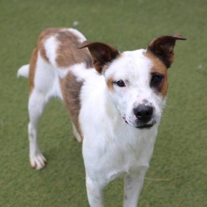 Pomegranate is a little shy at first, but once she gets comfortable, she's a total sweetheart! This lovely girl enjoys playing with her friends and is always up for a fun walk. She's still getting the hang of walking on a leash, but with each step, she's growing more confident and loving it even more.