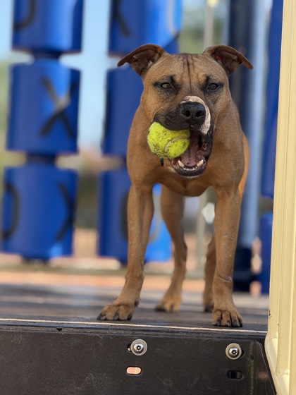 This boy is also smart, curious, and engaged with the world around him. He already knows the cue "touch," showing an eagerness to learn and a willingness to work with his person. Woohoo thrives when given enrichment and activities that keep his mind busy. He enjoys stuffed Kongs and Toppls, loves having a variety of things to chew on, and has a hilarious passion for ripping up old cardboard boxes - it's one of his favorite ways to entertain himself, and he does it with goofy, tail-wagging enthusiasm. His combination of intelligence, playfulness, and a touch of silliness makes him incredibly endearing and a joy to have around.