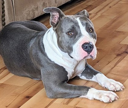 Sugar Magnolia has met several new adults and even spent time with a 10-year-old neighbor, and she handled these introductions very well. She can get a little mouthy when she's extremely excited during play, but she responds well to redirection. Loud or unexpected noises can startle her, and she may seek comfort by staying close to her person. However, she's gaining confidence every day and is learning that many of those everyday sounds aren't so scary after all.
