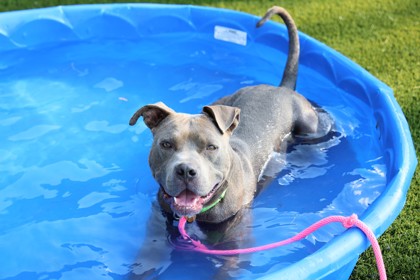 Denver knows all the tricks - sit, shake (with BOTH paws, thank you very much), and lay down - but don't let his smarts fool you... he's also the guy doing cannonballs in the water bowl because he LOVES the water. ????