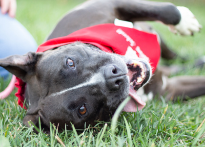 Raya is gentle, calm, and loves being close to her people. She's easy to leash and walk, knows sit, lay down, and even roll over! She's a smart girl who enjoys her treats.