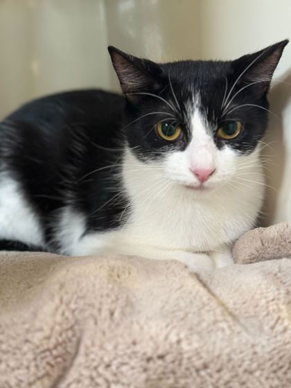Rosey is a sweet, slightly shy little lady who just needs a minute to decide you're worthy of her love - and then she's all in. Once she warms up, she transforms into a professional cuddle bug with a PhD in Chin Scratches (her absolute favorite thing in the world).