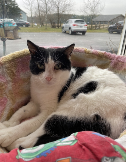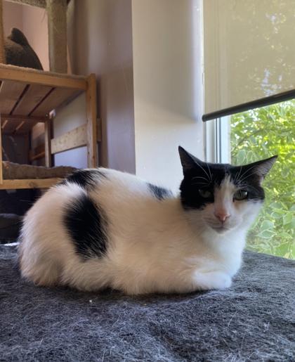 Beatrice is sweet once she's comfortable with someone, she would prefer not to be held. She is skittish, but loves to play. These two need someone willing to work with them and help them flourish in their new home. Bambi and Beatrice are extremely treat motivated and they love looking out big windows and napping in the sun. Bambi and Beatrice are bonded and need to be adopted together. A quiet loving home with someone who will help them gain confidence is what they need. If you are interested in this adorable pair please fill out our application at: https://anadoptflam.com/cat-kitten-dog-application-form/ or contact us during shelter hours at Animal Adoptions of Flamborough 905-689-7801. Visits to the shelter are by appointment only.