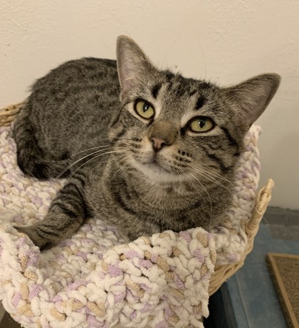 Adelle was discovered by good Samaritans in the Fall of 2025 huddled outdoors with her newborn kittens, sheltering in a doghouse. They contacted Tails To Tell and the little families journey began as they were placed in a safe foster environment indoors where Adelle could raise her five kittens in peace and where food was plentiful. Now her kittens are old enough to be adopted, this sweet lady is ready to find her soulmates and perfect family, who will love her and give her a safe home. Adelle is an extremely sweet girl, she thrives on attention, loves to give cuddles and have her human time. She is a confident kitty socially. She loves her kibble better than canned food but If she's upset she may stop eating, so any transition in her life will need this monitored.