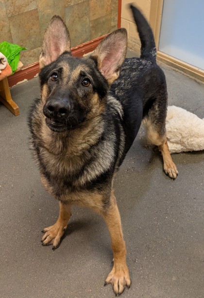 Meet Little! This sweet German Shepherd came to the shelter as a stray, and when not claimed, she is now looking for a new home. We have limited information about this girl, however she has proven to be a loyal, social dog who will thrive on structure and guidance. Shepherds are amazing dogs for the right family, but research into the needs of her breed are important if you're unfamiliar with them. Little loves to play with other dogs and has met a few canine friends here at the shelter. Stop by and ask to see Little!