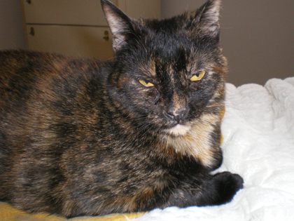 Meet Lucy! Lucy is a tortie, with a coat resembling a tortoise shell, and is a beautiful, enigmatic, and sensuous little lady - but with a touch of kitty playfulness. She is curious, adventurous, and loves to explore her surroundings. She enjoys monitoring the wildlife outdoors from the comfort of her plush window seat indoors. She is neat and considerate in her behavior and adores getting pets, especially head/chin scritches and belly rubs. She even enjoys being groomed. She'll engage in minor "zoomies," bat at her toys and chase the red laser dot. And did we mention treats? (Yes, please!) Lucy likes her space - and yours too! While napping, she will sleep in places both hidden and near you, occasionally next to or on you. For more information or to inquire about adoption, please contact her foster at: sands_of_time@verizon.net. For a peek inside her inner monologue, check out this video (copy and paste this link in your browser):
