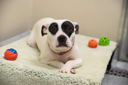 Beautiful Cheyanne is quite the sweet and shy girl! She is timid in the shelter environment and is slowly but surely coming out of her shell. When she first came to us, she would cower when volunteers came into her kennel and needed some extra time to warm up. She also wouldn't walk much farther than right outside the building but since then she's showed SO much improvement! Now she's going on walks on the trail and is even rolling over for belly rubs when volunteers enter her kennel. Cheyanne has lived with young children before and was very gentle with them, and she is also dog friendly! Cheyanne has such a sweet soul and we just know this girl will truly blossom in her forever home!
