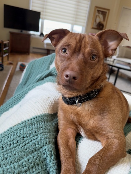 Wisconsin is a silly young man who loves to play but also curl up in your lap! He's spent some time in a foster home and here is what his foster mom had to say: "I've been fostering this little love bug for a few months now. Wisconsin, once he gets to know that he's in a safe environment, can't get enough cuddles. He also loves playing with his toys, other dogs (not sure about cats), naps in the sunshine, walks, toys that mysteriously contain treats, and slowly getting to know other people. He has definitely brought me much joy during this miserable winter!" Wisconsin is sweet, snuggly, silly, and an all around great little pup. Apply today!